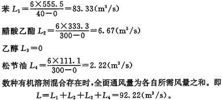 苯y(tǒng)p1=40mg/m3;醋酸乙酯yp2=300mg/m3;乙醇沒有規(guī)定,不計風(fēng)量;松節(jié)油yp4=300mg/m3。