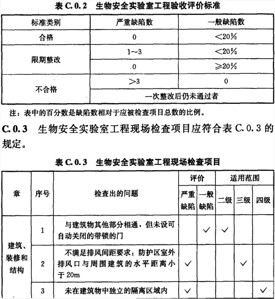 C.0.2 生物安全實驗室工程驗收評價標準應符合表C.0.2的規定。